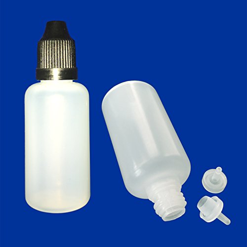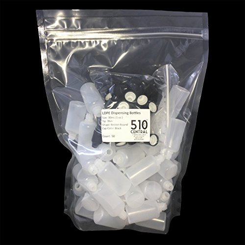 510 Central 30mL LDPE Plastic Thin Tip Dropper Bottles (50 Pack, Black Caps)