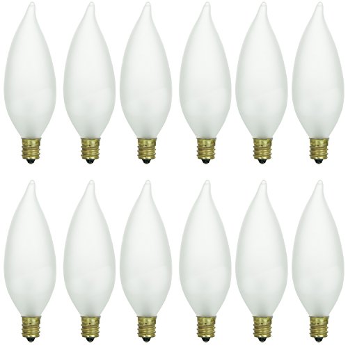 Sunlite 40CFF/32/12PK Candelabra (E12) Base Flame Tip 40W Incandescent Chandelier Frosted Bulb (12 Pack)