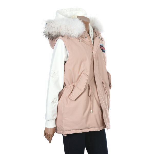 겉감 면61% 나일론39% 안감1 나일론100% 안감2 면61% 나일론39% 충전재 오리솜털80% 오리깃털20% 배색 리얼라쿤100%