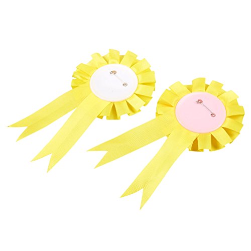 SET OF 4 SMILEY ROSETTE RIBBONS - PARTICIPATION RIBBONS, AWARD PARTY SUPPLIES FOR CHILDREN'S EVENTS, ACHIEVEMENT RIBBONS, YELLOW - 3.6 X 6.7 INCHES