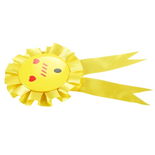 This pack of Rosette Ribbons includes 4 different smiley face ribbons. These Ribbons come in yellow and features one smiling face with hearts for eyes, one regular smiling face, one love-dazed face, and one ecstatic face. This pack of 4 Smiley Face Rosette Ribbons is intricately crafted with plastic for the ribbon and iron for the disk which supports the ribbon. Reward your kids with this fantastic keepsake of a special day. Attach to clothing, with adult supervision, using the pin on the back of the ribbon. These ribbons will liven up your son or daughters' mood and help add to their sense of achievement! Dimensions: Rosette Head: 3.6 x 6.7 Inches