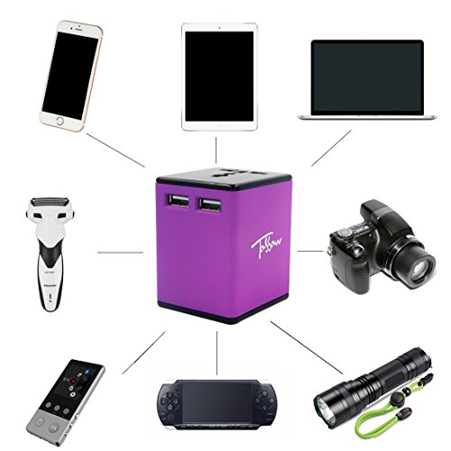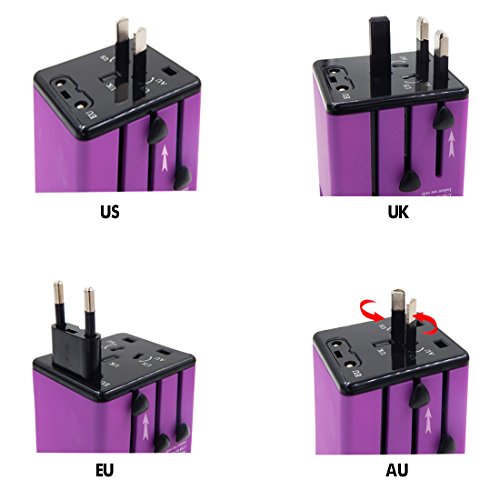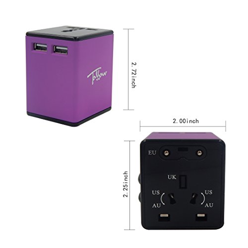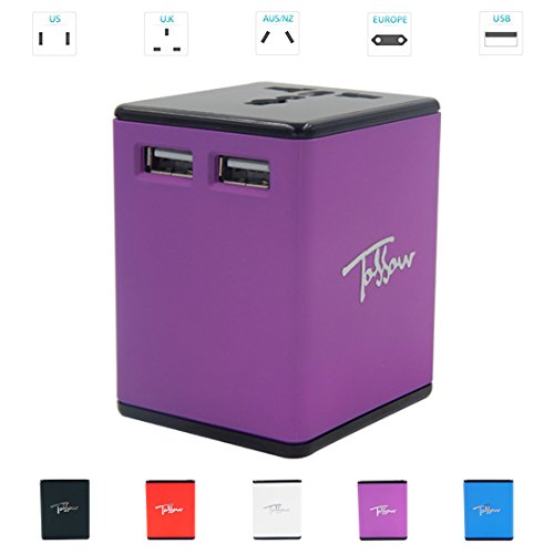 TOSSOW Universal Travel Adapter,All-In-One Worldwide Travel Adapter with Dual USB Ports 2.4A Global Power Converters for Smartphone,Tablets International AC Power Plug for US EU UK AU,Purple