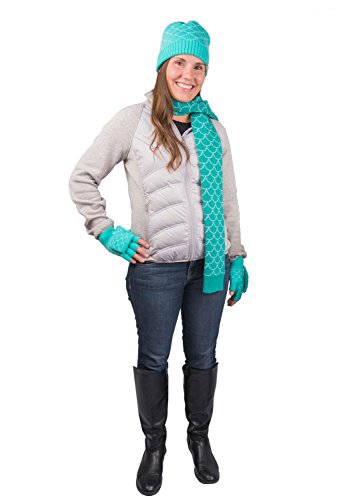 STYLE Because mermaids exist year-round, you need a winter accessory set that displays your affinity for the mermaid life during the coldest months. Fin Fun's nautical 3-piece knit set gives you the look of a sea siren on dry land! Trendy, yet timeless-this soft, knitted set in a mermaid-scale pattern makes the perfect gift for any mermaid lover. - Trendy mermaid-scale style of teal green and mint makes a fashion statement