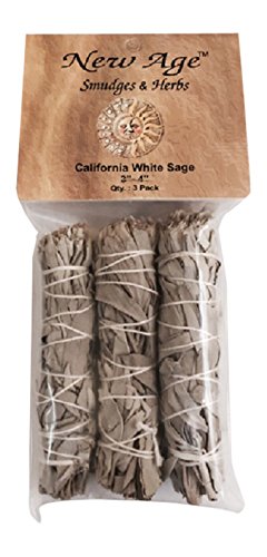 NewAge Smudges and Herbs MCWS3 California Mini Sage Wands, 4-Inch, Pack of 3, White