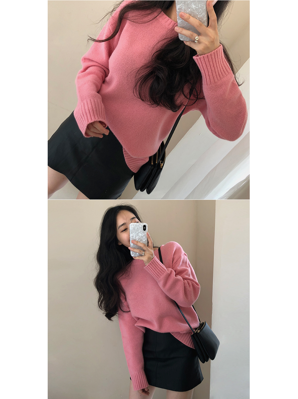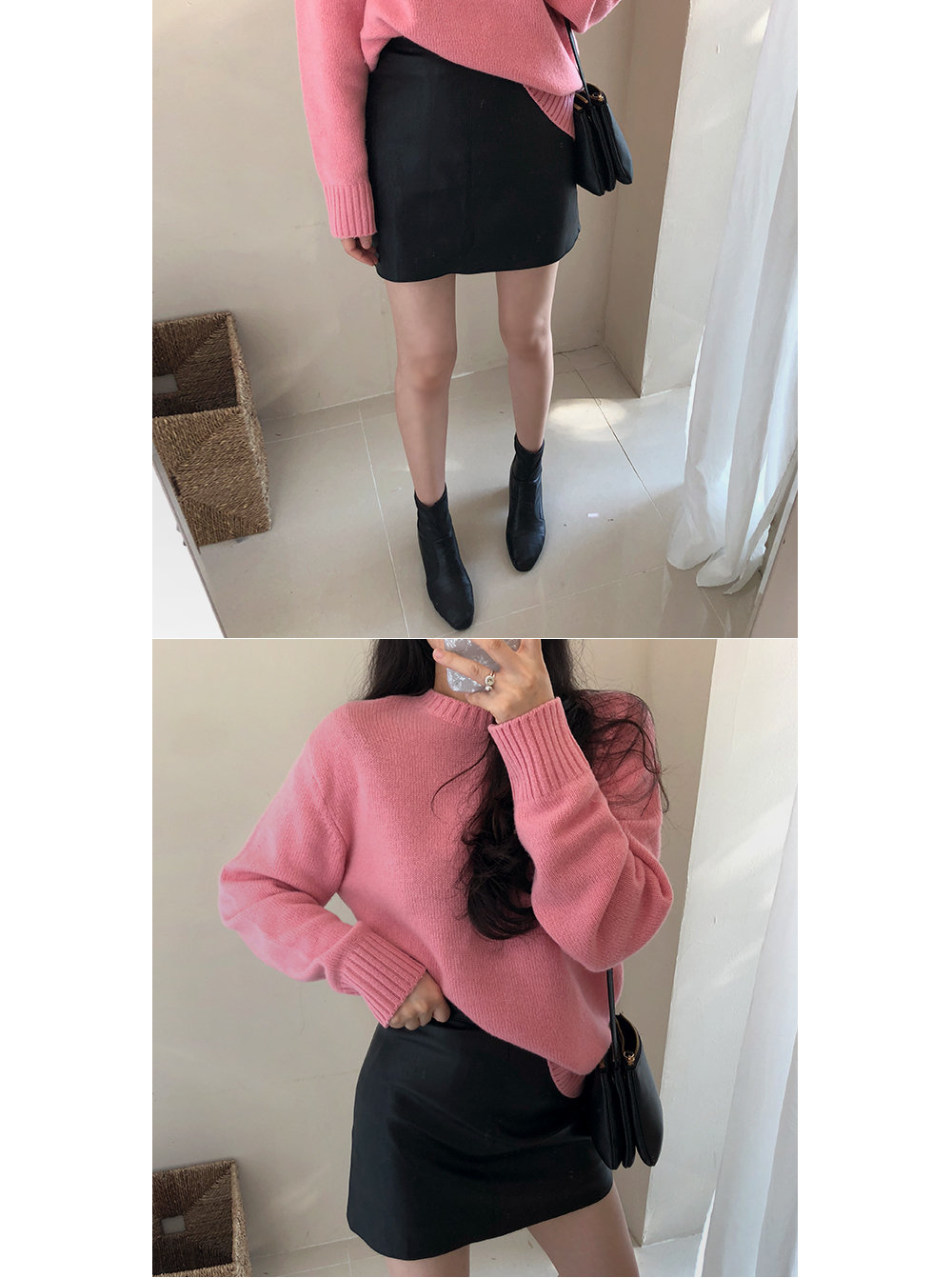 상의 매치가 쉬운 블랙컬러로 니트, 데일리티셔츠, 블라우스등