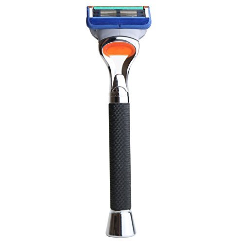 Razor MD 3-Piece iGrip Black Custom Shave Set (Black iGRIP 5-blade Razor, Shave Brush, Chrome Stand)