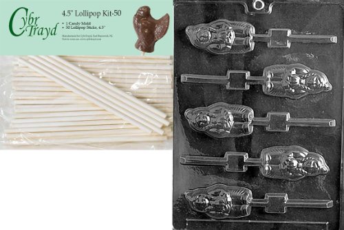 Cybrtrayd 45St50-T034 Indian Lolly Thanksgiving Chocolate Candy Mold with 50-Pack 4.5-Inch Lollipop Sticks