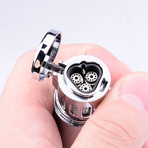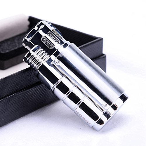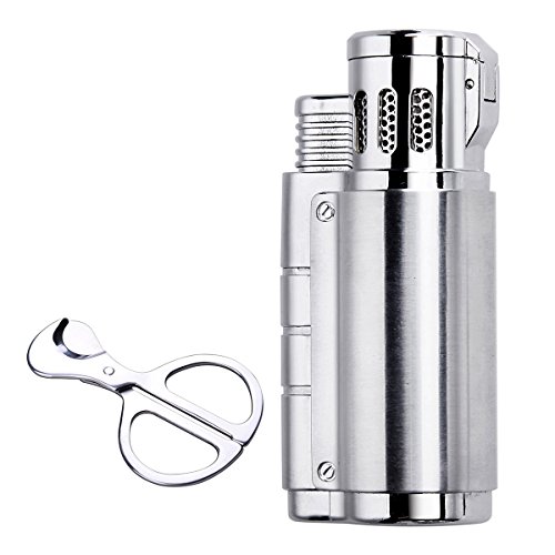 Silver Triple Jet Flame Butane Torch Cigarette Cigar Lighter w/ Punch Cutter Scissors Gift Box