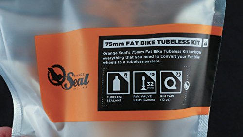 -. Binding : Automotive -. Brand : Orange Seal -. EAN : 0748252868640 -. Feature : Contains rim tape, two 48mm Removable Valve Core valve stems, and 8oz of sealant / Use 4oz of sealant per Fat tire / Everything needed to convert a pair of fat bike wheels to tubeless (except tubeless-ready tires) / Use Original formula down to 16ºF/-9ºC use Subzero formula at all Temperatures down to -20ºF/-29ºC / Orange Seal Fatbike Tubeless Kit. Orange Seal Tubeless Conversion Kits contain everything needed to convert a pair of Fat Bike Wheels with 50-75mm Wide Rims to tubeless. -. Label : Orange Seal -. Manufacturer : Orange Seal -. MPN : 86864 -. PackageQuantity : 1 -. PartNumber : 86864 -. ProductGroup : Automotive Parts and Accessories -. ProductTypeName : AUTO_ACCESSORY -. Publisher : Orange Seal -. Studio : Orange Seal -. Title : Orange Seal Tubeless kit fat tire x 75mm - standard sealant -. UPC : 748252868640