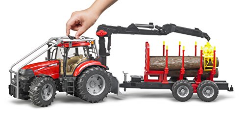 -. Title : Bruder 03098 - Case IH CVX 230 Forsttraktor mit Rückeanhänger und 4 Baumstämmen