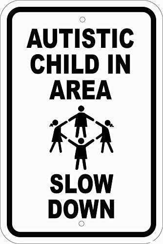 Imprint 360 FS1006 Autistic Child in Area Slow Down, White/Black Heavy Duty Aluminum and Industrial Strength Vinyl, 12" x 18"
