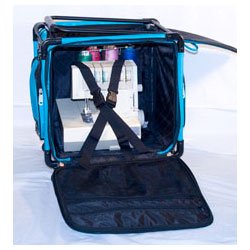 -. Feature : This sturdy bag is good for your serger, a laptop, thread Treasure Chest, and sewing supplies, etc. The case fits most serger machines. / Dimensions: Interior: 16"L x 15"H x 14"D, Top access: 12"L x 10"D, Exterior: 17"L x 16"H x 14"D, Front access: 14"L x 14"D. / Features: Sturdy frame protects your machine, Two side pockets for storage, Two inside straps to secure your machine, Removable telescopic puller bar, Two rear zipper compartments, Both top and front opening for easy access, Versatile pockets keep all your sewing tools organized, Bungee cord to secure stackable items, Store the Bungee cord inside the front and back zipper pockets. / Fits the following Brands and Models: Baby Lock Rachel, Anna, BL9 (Top), Audrey, Elizabeth, Embellisher, Grace, Melody, Molly, Denim, Intrigue. Elna Nouvelle Mini(Mini Opal), Elna Lotus. Janome Jem Series, Sew Mini. Singer 75(without case), Basic Machine, Very Basic Machine / Interior: 16"L x 15"H x 14"D