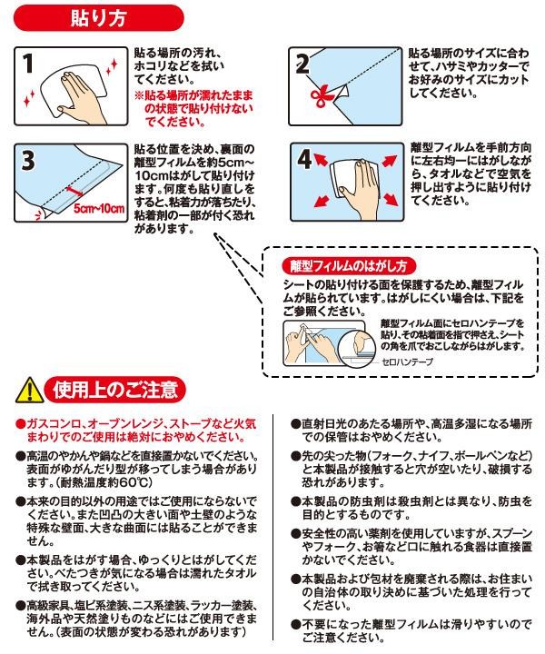 裏面微粘着加工で、棚の側面やシンク下、壁にも簡単に貼ることができるので壁からのゴキブリの侵入をガードします。シートは半透明ですので、お部屋や家具の雰囲気はそのままに防虫することが出来ます。 |