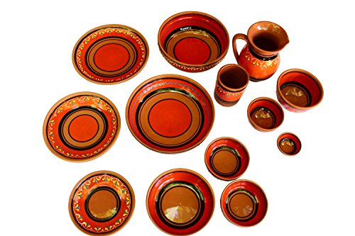 Terracotta Festive Set of 3 - Orange - Hand Painted In Spain