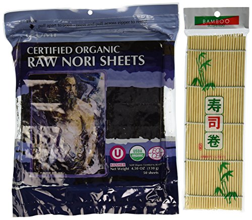 50 sheets + FREE Sushi Rolling Mat - Certified Raw - dried at under 85 degrees Fahrenheit - UnCooked, UnHeated