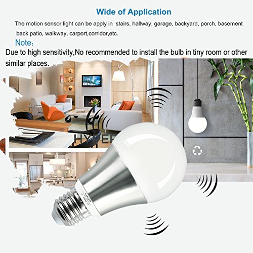 - ④Safe & Easy to Install: E26 Edison base, safe power interface, easy to install and dismantle, intelligent bulb, energy saving, environmental protection. Please turn off the power before you install the motion sensor light bulbs.