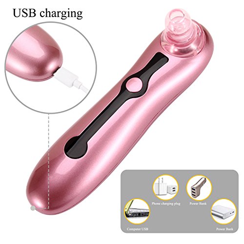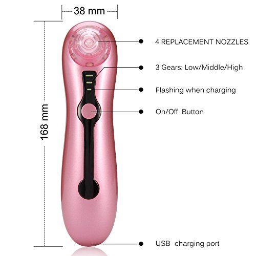 - Strong Suction: 5 different size replacement suction can be adjusted according to your actual needs by pressing the power button different times. It has strong suction and can effectively suck out the nose blackhead and acne.