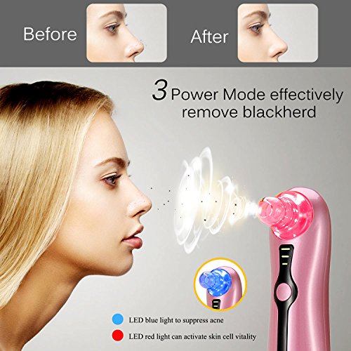 Blackhead Remover,Electronic Facial Pore Cleaner Acne Remover Utilizes Pore Vacuum Extraction By iSuri , Blue Red Light Skin Tightening Comedone Extractor (Pink)