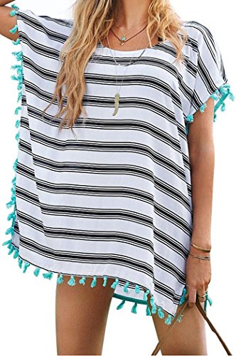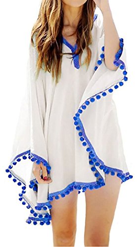 MiYang Women's Beachwear Cover-up Tunic Pom Pom Trim Cover Up