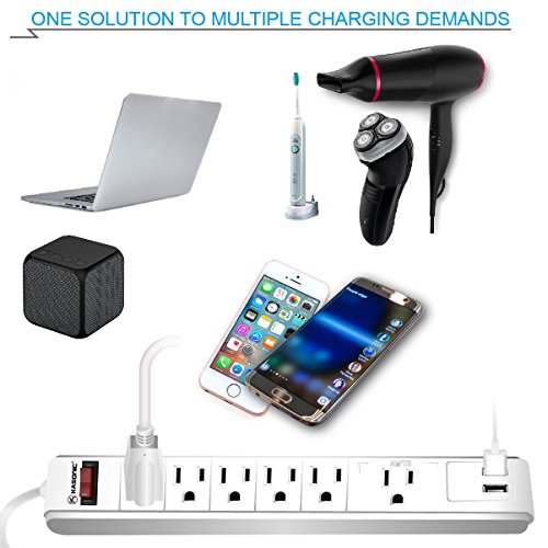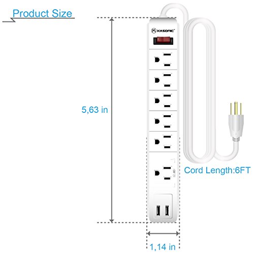 Power Strip Surge Protector, Kasonic 6-Outlet with Dual 2.1A USB Charing Ports, 6-foot long cord, a charging station for Home Office (2 Pack)