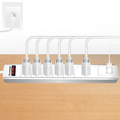 - FLEXIBLE AND CONVENIENT- An extra-long 6-feet. cord enables connection to a distant wall outlet and it was designed with the horizontal sockets, this helps to maximize the space between the sockets. In addition, the key holes’ slots on the back for convenient mounting throughout your home or you can use any double-sided tape to do so.