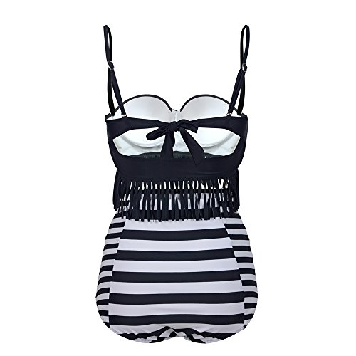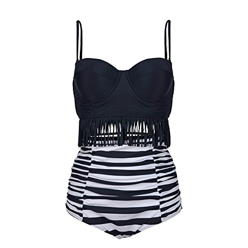 Title : Dreaweet Vintage High Waist Tassel Women's Floral Two Piece Bikini Bathing Suit,Large,Black