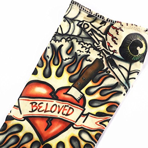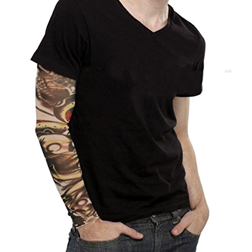 -. Feature : Fake temporary fake slip on tattoo body art arm stockings arm sleeves / Gender: unisex / Material: 92% Polyester, 8% Spandex / Looks real seamless, easy slip on and off. Stretchable fabric material / Flexible Stretchy Fake Temporary Tattoo Sleeve