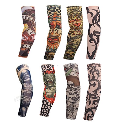 -. Title : Dachun 6pcs /8pcs/10pcs Set Body Art Arm Stockings Slip Accessories Fake Temporary Tattoo Sleeves, Tiger, Crown Heart, Skull, Tribal Design