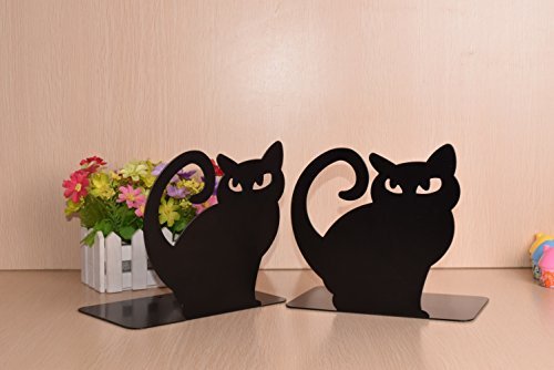 - MATERIAL:White cute cat nonskid bookends,bookends are made of metal.