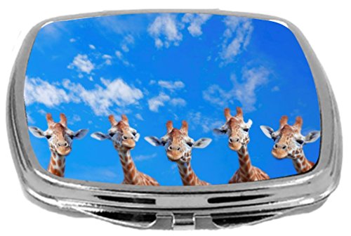 Rikki Knight Compact Mirror, Giraffes On Blue Sky