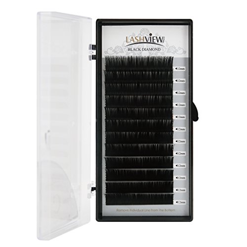 LASHVIEW 0.07 Thickness Silk Individual Lash Extensions C Curl 12mm Soft Application for Professional Salon Use Pure Korean Silk lashes Volume...