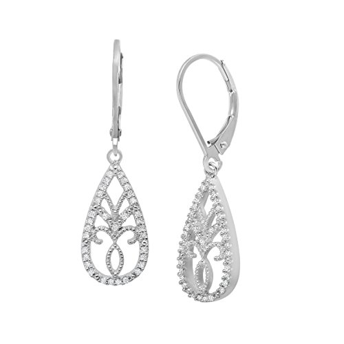 A simple filagree design sparkles in these delicate yet chic drops. Brilliant diamonds totaling 1/5 ct adorn the openwork design in this pair crafted in shimmering sterling silver. Pieces measure 11/16 by 3/8 inches.Feature
