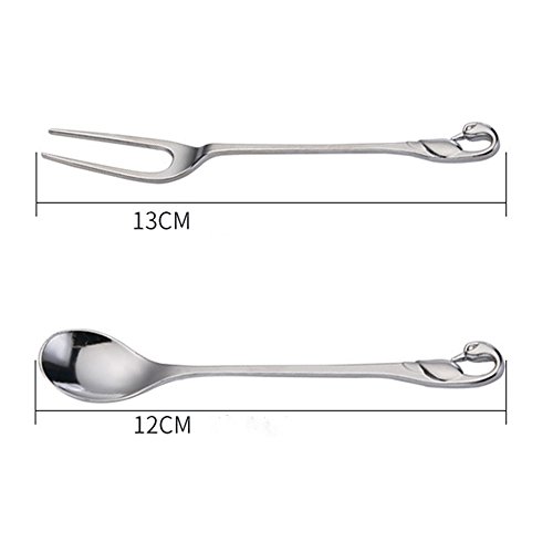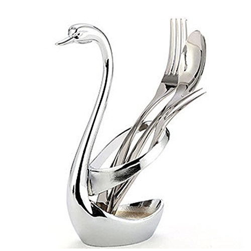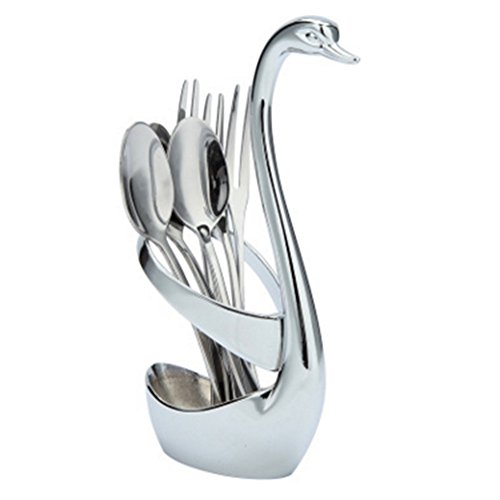 Dinnerware Set,Fruit Forks Stainless Dessert Forks Set for Salad Fruit Cake, Set of 7, Swan Base Holder with with 3 Forks & 3 Spoons