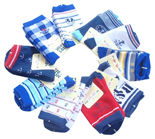 ( bambini ) 마린 컬러 쥬니어 키즈 남아 크루 장양말 10족 세트 #439 (15~19㎝) …