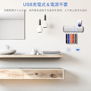 【UV殺菌+全部収納】254ウエーブ長寿命紫外線ランプを使用。歯周病菌、大腸菌、黄色ブドウ球菌などの雑菌を99.99%を除菌できる。歯ブラシが5本+歯磨き粉収納できるのでほぼ家族全員分。電動歯ブラシにも対応することができる。省スペースで、手狭な洗面所にもおすすめ。