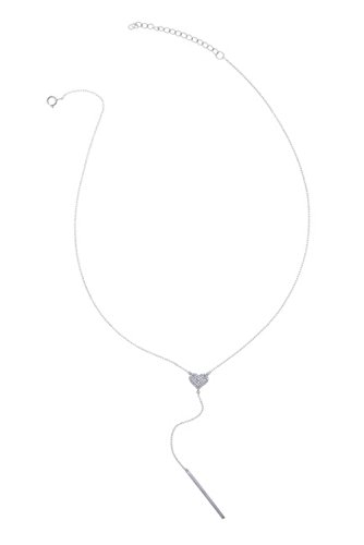 Heart lariat necklace in sterling silver with drop chain and bar pendant 16 inch + 2 inch drop chain Heart - 10mm x 10mm I Bar - 2mm x 31mm sterling silver Brand : ADORNIA