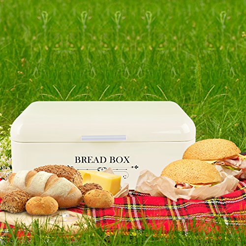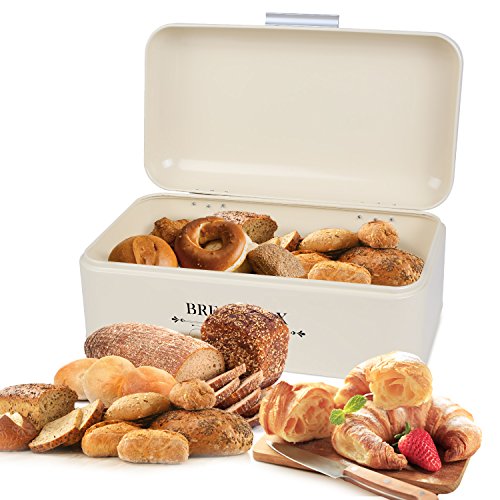 EXTRA LARGE SPACE BOX:Keep your bread fresh and organized with this bread box,it is convenient to store over sized loaves, baguettes, bread rolls, buns, loaf of bread, bagels and cupcake etc.