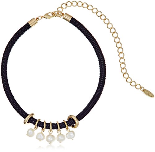 Ettika Pearl Magic in Black and Gold Choker Necklace, 11" + 5" Extender