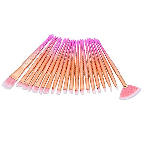Makeup Brushes 20 pcs Mermaid Soft Synthetic Professional Makeup Foundation Powder Blush Eyeliner Mermaid Brushes Eyeshadow Blending Brushes Set