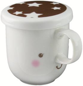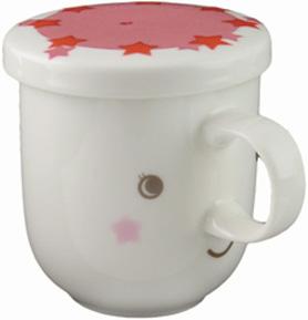セレちゃんファミリーシリーズ。Vフィルターをセットした蓋付きマグ。かわいいだけじゃなく機能性も抜群。ポットなしでお茶が飲めるすぐれもの。Vフィルターは金気なくお茶の味をそこないません。