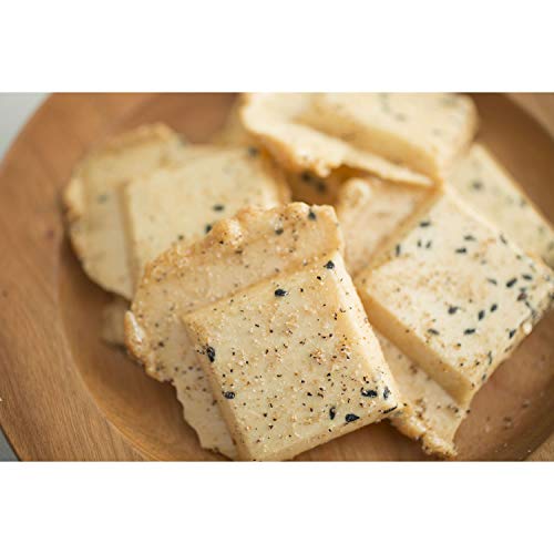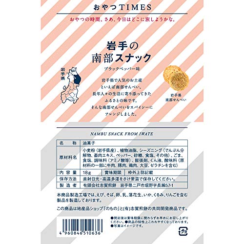 原材料:小麦粉(岩手県産)、植物油脂、シーズニング(でんぷん分解物、蓄肉エキス、ペッパー、砂糖、食塩、その他)、ごま、食塩、調味料(アミノ酸等)、膨張剤、くん液、酸味料(原材料の一部に牛肉、豚肉、鶏肉、大豆、ゼラチンを含む)