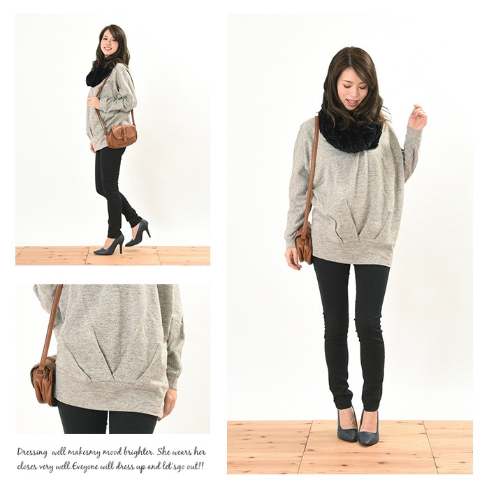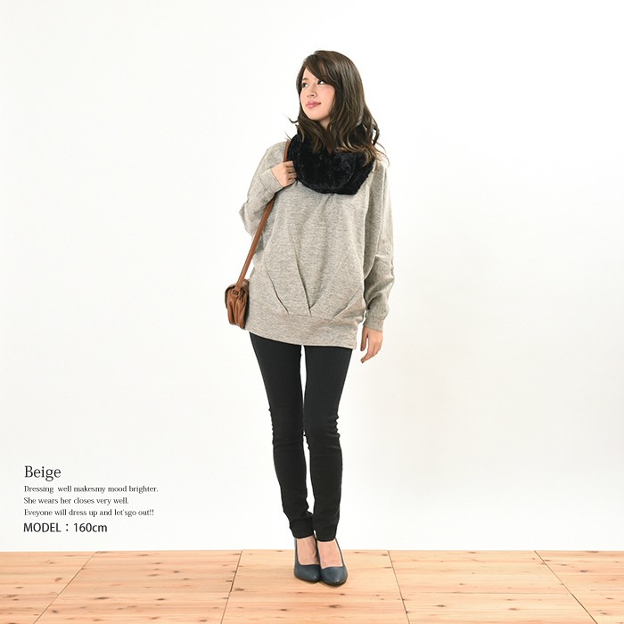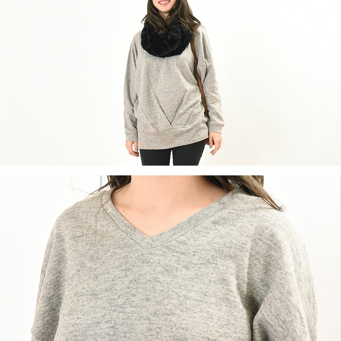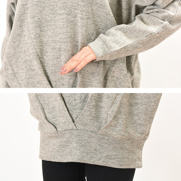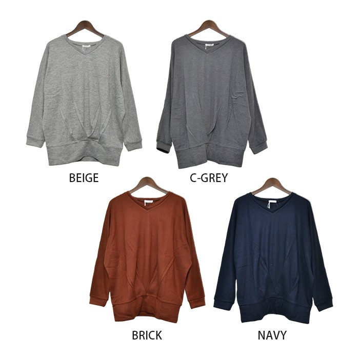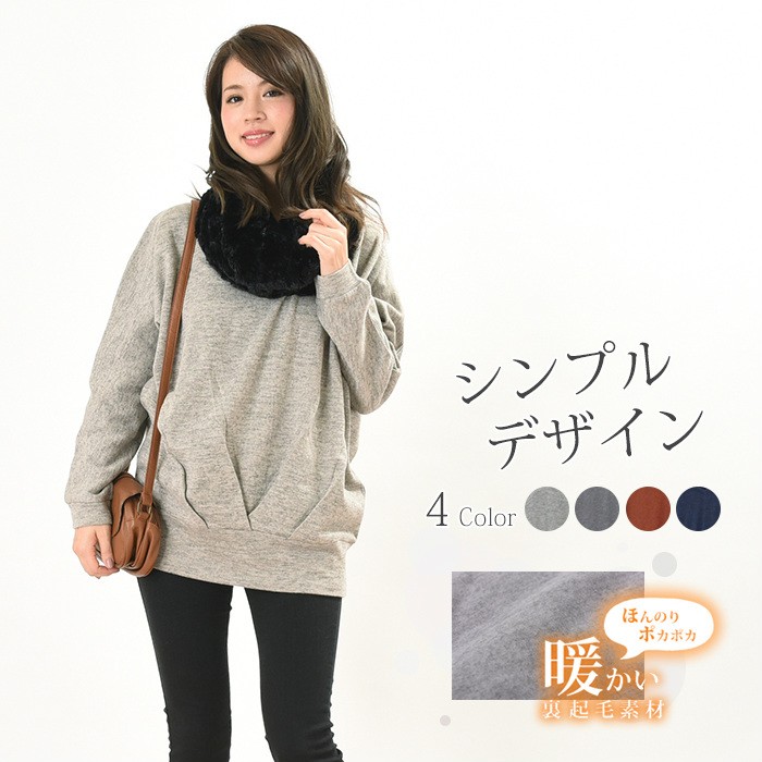 表面はふんわりとした触り心地、内側は起毛でふんわりあったかい、これからの時期にピッタリのプルオーバーです。無地でシンプルなので、幅広いコーディネートに着回しができてワードローブにお使いただけます。全体的にゆったりとしたシルエットなので、着心地が楽ちんで幅広い年齢層の方に大人気です♪また、前身頃の裾部分には大き目のタックが入っていて着やせ効果も抜群です♪Mサイズ Lサイズ
