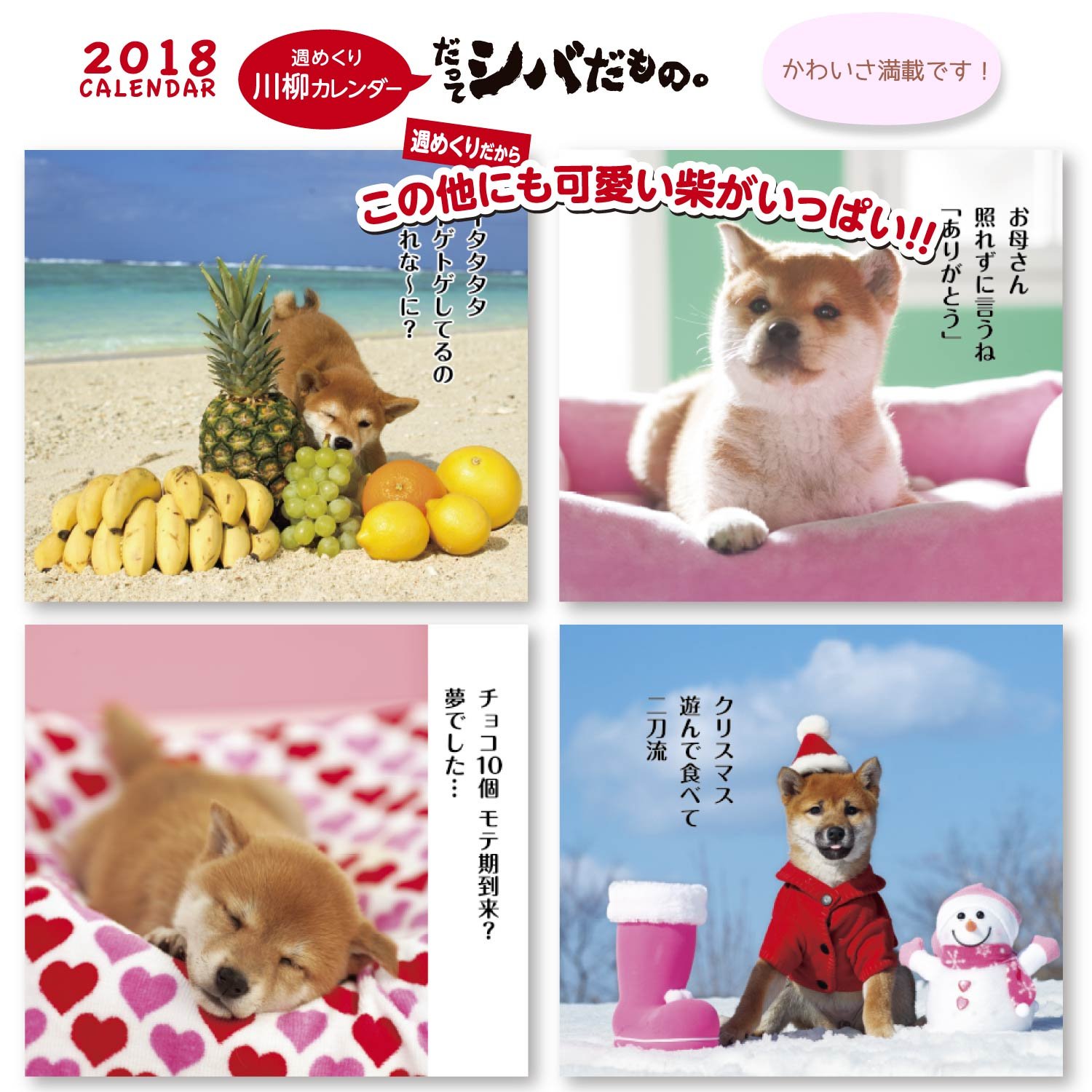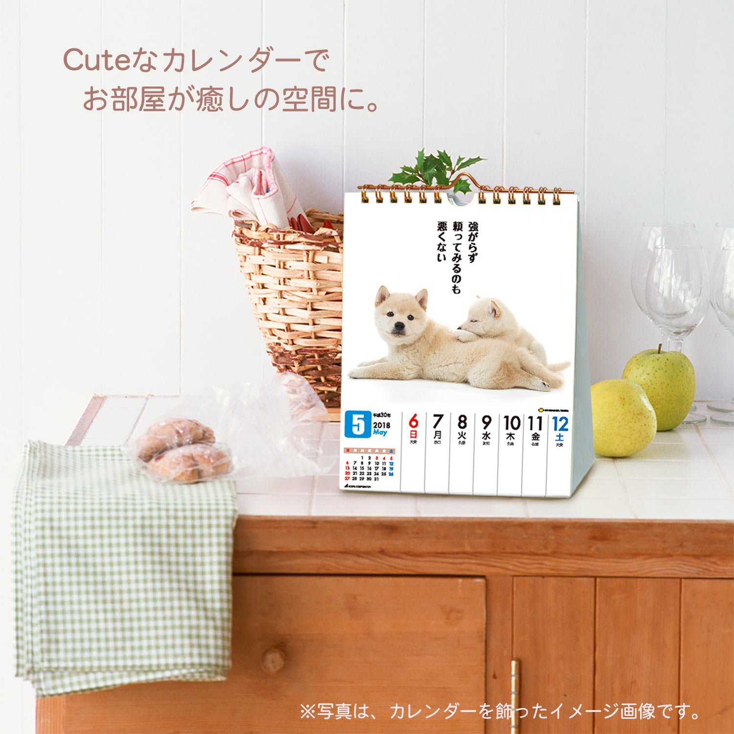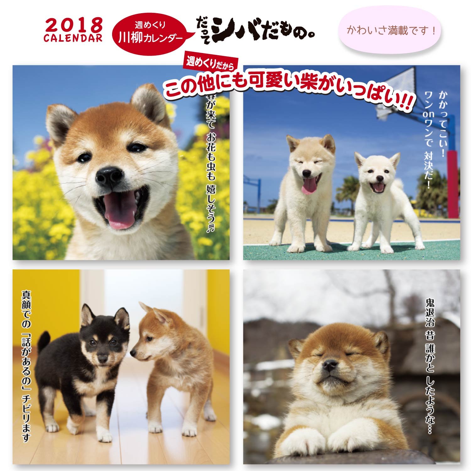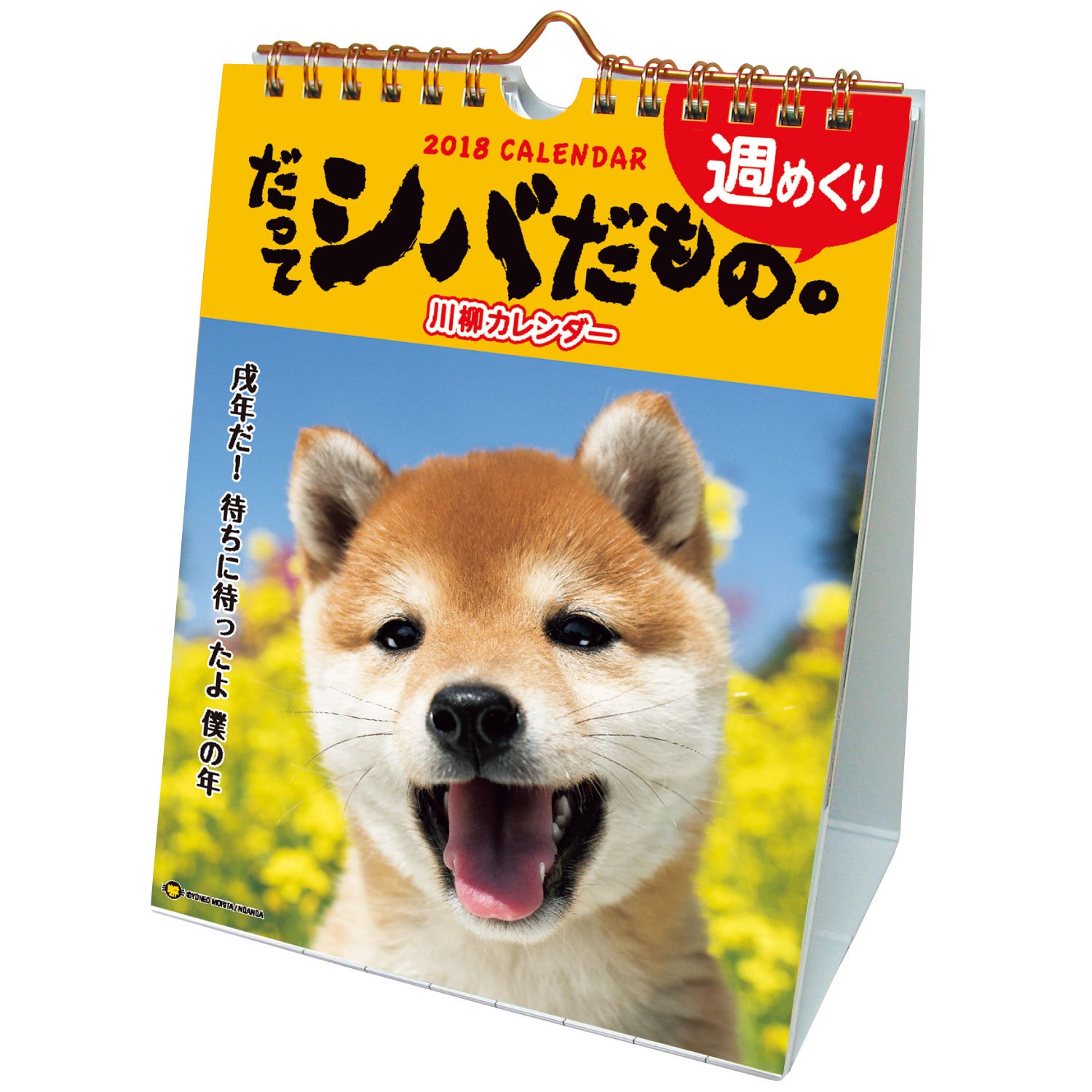 It is a weekly turning calendar full of charm of Shiba Inu with Kawanagi better complementing the photo.