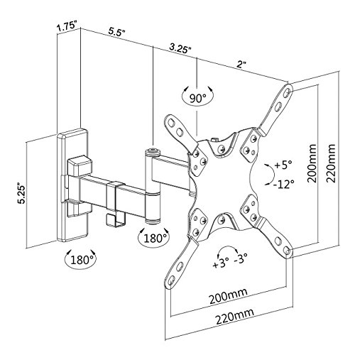 Features ? 5 to -12 degree screen tilt and 45 to -45 degree TV swivel for creating optimal viewing angles ? Integrated cable management system keeps potentially messy cords clean and organized ? Collapses flat against the wall for a low profile or can be fully extended up to 14" from the wall ? Common mounting hardware is provided 0