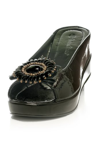 (Helens Heart)/Women's/Sandals/DIRECT FROM USA/Helens Heart Women's Casual Slide Wedge Sandals (7, Black)