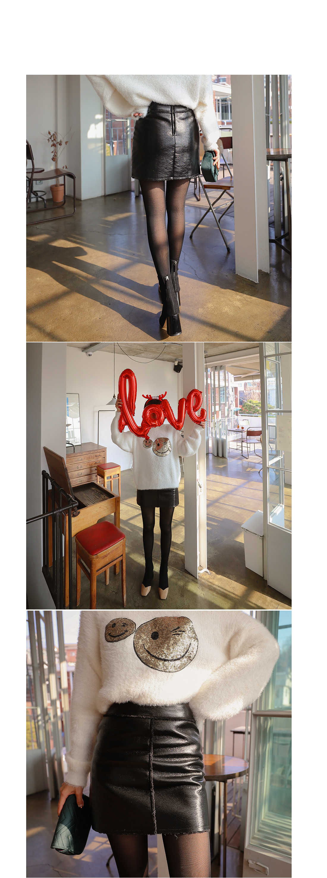 MD COMMENT FW시즌 트렌디한 포인트를 주기 딱! 좋은레더 스커트를 소개할게요.살짝 A라인 디자인으로 제작되어 레그 라인이 슬림해 보이는효과를 가져다 주는 아이템이구요.광택감이 있는 페이크 레더 소재로 존재감이 있어이지한 상의와 매치해주셔도 센스있는 스타일링을 하실 수 있어요!안쪽 전체에 포근한 털 안감으로 보온성이 뛰어나한 겨울에도 따뜻하게 착용이 가능해요.허벅지 살짝 밑으로 내려오는 기장감으로다리 라인이 길어보이구요^^살짝 넓은 오비 디테일로 룩에 밋밋함을 덜어주었으며뒷라인에 지퍼로 손쉽게 탈,착용이 가능해요.포인트감 있는 디자인으로 연말룩, 파티룩으로 다양하게 활용하기 좋은 스커트 아이템으로 추천드려요!COLOR/SIZE 블랙,베이지S,MMODEL FITTING 블랙/S