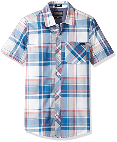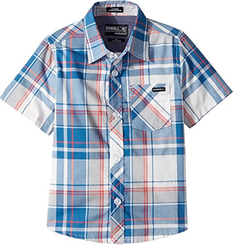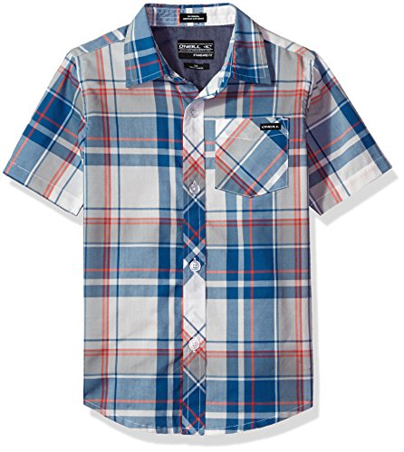 The O'Neill boys' plaid shirt is a regular fit stretch woven featuring yarn dyed plaid and a chest pocket with a flap.