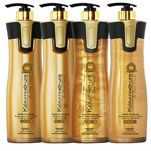-. Title : Keratin Cure Professional Brazilian Hair Treatment Gold & Honey V2 CREME 4 Piece Kit 960 ML /32 FL OZ - Tratamiento Brasilera de Keratina Alisado