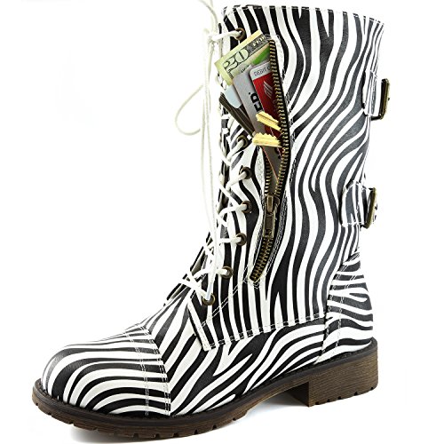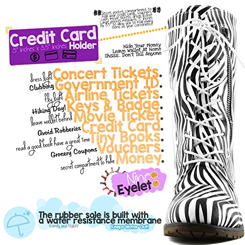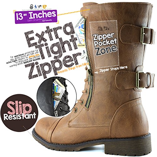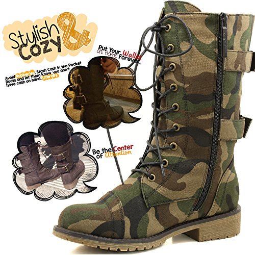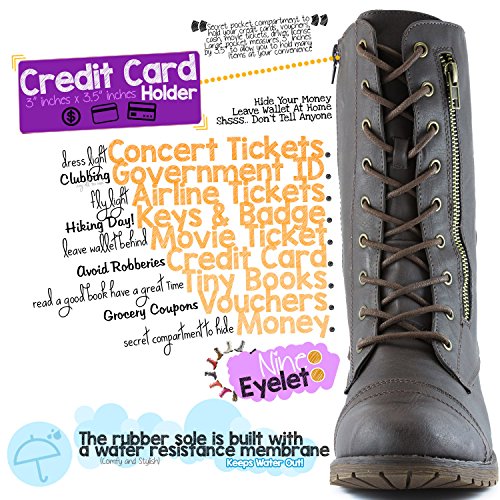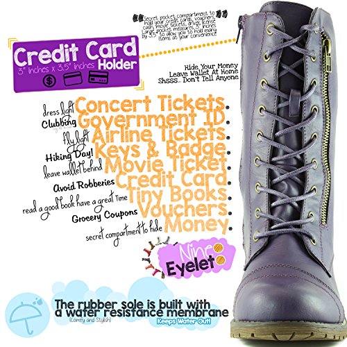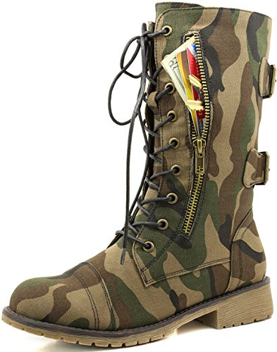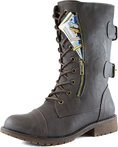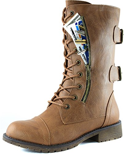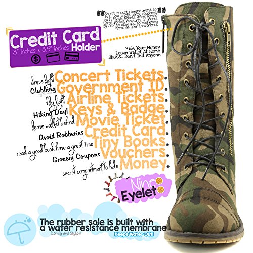DAILYSHOES WOMEN'S MILITARY COMBAT LACE UP MID CALF HIGH CREDIT CARD KNIFE MONEY WALLET POCKET BOOTS