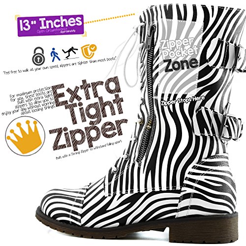 Women's Military Up Buckle Combat Boots Mid Knee High Exclusive Credit Card Pocket, White, 6.5